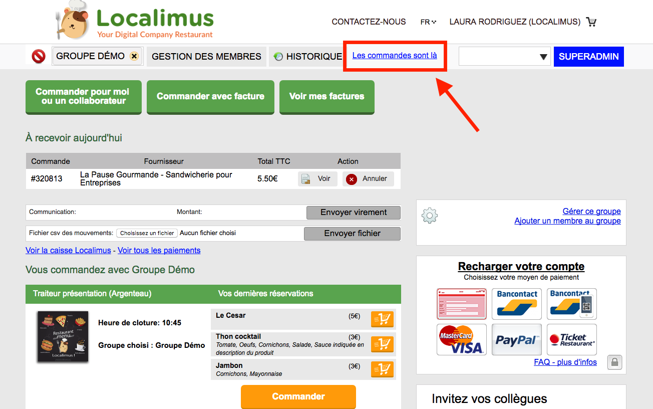 Afin de prévenir vos collègues que les lunchs ont été livrés, il vous suffit de cliquer sur le lien "les commandes sont arrivées" sur Localimus.com